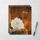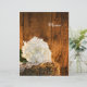 Customise the charming White Hydrangea and Barn Wood Country Wedding Menu with the details of the meal that you will serve at your summer or fall farm style bridal shower, post wedding brunch or marriage reception dinner by adding the salad or first course, entree or second course and dessert or third course. This rustic chic custom nuptial menu features a floral photograph of a white hydrangea flower blossom and vintage lace trimmed linen handkerchief on a hay bale with a weathered brown barn wood background.