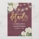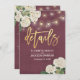 White hydrangea Floral Wedding Details Information Enclosure Card