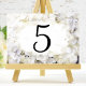 Customise these pretty White Hydrangea Flowers Watercolor Table Numbers for each table at your summer garden party inspiration theme bridal shower, birthday party or marriage reception. These classy custom flowery table number cards feature a digitally watercolor painted close up floral photograph of white hydrangea flower blossom petals with a white background.