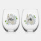 White Hydrangea Mr. and Mrs. Stemless Wine Glass