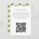 This enclosure card lets your guests know that all of the information about your wedding (like hotel blocks, out of town guest information, and a wedding event timeline) traditionally included on various different paper enclosure cards is now available online via your wedding website by scanning this personalised QR code with any smart phone. The backer graphic of vintage lime light white and green hydrangea blossom illustrations add grandmillennial style.