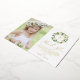 Send thanks to family and friends with this customisable first holy communion thank you card. It features a floral wreath of white hydrangea flowers. Personalise by adding your details. This gold foil photo first communion thank you card is perfect for autumn first communions.