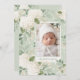 Beautiful white hydrangeas in full bloom with mixed greens were used to create this beautiful baby birth announcement. Soft white polkadot background pattern. Coordinating sage green color is carried over on the reverse side completes this beautiful announcement. Gender neutral. A perfect baby birth announcement for any season. Add your stats on reverse side in scalloped frame.