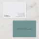 Professional white card with green-grey background and text. evokes elegance and simplicity. Suitable for creative industries and business professionals. Premium or luxury card stock recommended.