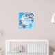 Playful illustrated watercolor white moon-flowers, birds & blue-green leaves some draped around a golden glittering geometric frame to personalise to guide your guest to your guest book.