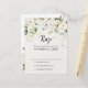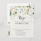 Elegant white ivory floral wedding RSVP postcard featuring elegant bouquet of white , ivory, cream rose , and sage green eucalyptus leaves and elegant watercolor bouquet.