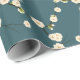 White Japanese Cherry Blossoms on Forest Green Wrapping Paper