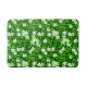 Bath mat in a pattern of white jasmine flowers among branches and leaves in shades of deep to lime green on a deep emerald green background