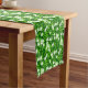 Table runner in a pattern of white jasmine flowers among branches and leaves in shades of deep to lime green on a deep emerald green background