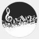 White Jumbled Musical Notes on Black Classic Round Sticker
