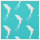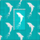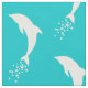 White Jumping Dolphin With Bubbles cute white dolphin silhouette preparing to jump from the water on gradient blue sea background