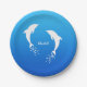 White Jumping Dolphin With Bubbles cute white dolphin silhouette preparing to jump from the water on gradient blue sea background