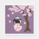 White Kimono Kokeshi Doll - Cute Geisha Girl Purpl Napkin