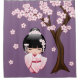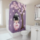 White Kimono Kokeshi Doll Cute Geisha Girl Purple Shower Curtain