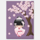 White Kimono Kokeshi Doll - Cute Geisha Purple Magnet