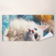 This bath towel has a cute white kitten on it.