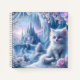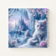 A beautiful, dreamy fantasy scene with an adorable white kitten in a magical winter kingdom with an enchanting castle.