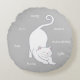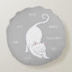 White Kitty Cat Yoga & Text on Silver Grey Round Cushion
