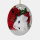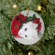 Blue eyed, long haired white kitty cat plays with the Christmas decoration photo round Christmas ornament