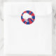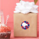 The white shape of a kiwi bird against a blue and red design. Red, white, and blue are the colours of New Zealand's flag.