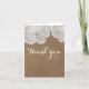White Lace & Brown Rustic Chic Elegant Wedding Thank You Card