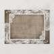White lace over grunge rustic burlap background modern goth save the date postcard.