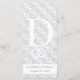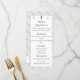 Design features the appearance of white lace as background to your customisable menu options. Monogram of first initials of bride and groom are displayed at top on either side of a silver cross. Text is displayed against a white backing, Reverse side displays the first initial of couple's last name in a large, white font. Names of couple and wedding date are displayed below. Very elegant. Designed to coordinate with the White Lace Catholic Monogrammed Wedding Suite collection.