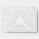 Lace-look doily-like envelope is available in several sizes. The upside down heart can signify a broken heart, break-up or anti-love, or love upside down.