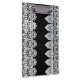 White lace forms a delicate border against black background. © and ® Bigstock® - All Rights Reserved.