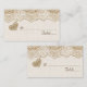 White lace and cardboard heart with initials on burlap wedding seating place card featuring white lace on linen natural burlap or hessian and a heart made of cardboard with initials. Text in brown. Note that lace, cardboard and burlap are all “printed on” and not real materials. This elegant, shabby chic sophisticated and romantic design with a rustic essence is part of a wedding set and is perfect for a country chic or western spring, summer or fall/autumn wedding with a neutral colour palette.