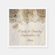 White lace and cardboard heart with initials on wood wedding paper napkin featuring floral white lace on old wood and a love heart made of cardboard with initials. Text in brown. Note that lace, cardboard and wood are all “printed on” and not real materials. This elegant, sophisticated and romantic design with a rustic essence is part of a wedding set and is perfect for a country chic or barn western spring, summer or fall/autumn wedding bridal shower, reception, engagement, or anniversary party with a neutral colour palette.
