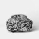 Elegant white lace design on a black background.