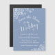 This beautiful magnetic cards will let your friends and family know to save the date for your upcoming wedding. The beautiful features a dusty blue or periwinkle coloured background, lacy script calligraphy, and ornate white floral lace in the corners. Beautiful way to let your friends and family know about your upcoming wedding.