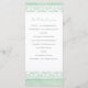 Double-sided white lace on a floral canvas mint green background wedding program. Green with white lace wedding stationary set. Edit this wedding programme with your own name, dates, ceremony wording, wedding party attendants and thanks. Simple yet elegant program simply replace sample text with your wedding information details. Modern white and pastel green wedding ceremony program. Art and design by Sarah Trett by www.sarahtrett.com for www.mylittleeden.com
