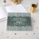 Elegant vintage floral lace border over moss-green wood planks texture print. Customisable wedding guest book template.