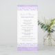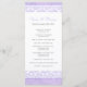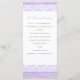 Double-sided white lace on a floral canvas purple mauve background wedding program. Purple with white lace wedding stationary set. Edit this wedding programme with your own name, dates, ceremony wording, wedding party attendants and thanks. Simple yet elegant program simply replace sample text with your wedding information details. Modern white and pastel lilac purple wedding ceremony program. Art and design by Sarah Trett by www.sarahtrett.com for www.mylittleeden.com