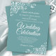 White Lace on Teal Budget Wedding Invitation