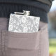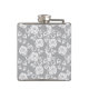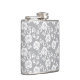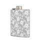White lace pattern on grey background hip flask