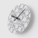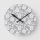White lace pattern on grey background round clock