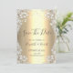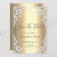 String lights and lace on a gold background. Beautifully save the date that can be customised with your name. Select the "customise" button to change the font style, colour, and size.