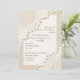 Elegant white lace with pearls wedding bridal shower invitation featuring white lace on sand beige that covers two corners of a white rectangle with beige border. Text in brown. Note that lace is “printed on” and not real fabric. This elegant, sophisticated and romantic design is part of a wedding set and is perfect for a chic spring, summer or fall/autumn wedding with a neutral colour palette.