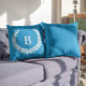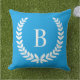 Change the pretty azure blue solid colour background on this white laurel wreath monogram design to create your own throw pillow. Modern monogram style font. You can change that font.