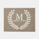 Shabby chic and perfect rustic doormat for a classy neutral addition to your doorstep! White laurels silhouettes surround your personalised family monogram letter and full name on a faux burlap texture! This doormat would also make a great gift for newly weds or new home owners!