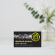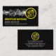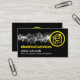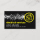 Cover features an electrical lightning charging up a yellow letter-e home circuit logo. Just below this lies the business name "electrical services" alongside your prestigious name and the phone contact.
