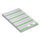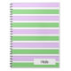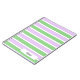 A notebook designed with a white, lilac and green striped pattern. Customise the notebook with your special name or text among other options.