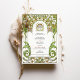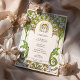 This captivating wedding invitation showcases a breathtaking Art Nouveau design featuring graceful white lilies, delicate yellow daffodils, and lush greenery. The floral details, with their soft white and golden hues, intertwine with the flowing curves and intricate lines characteristic of the Art Nouveau movement. Accents of peach and earthy green add a touch of warmth and elegance to the composition. The customisable text area is framed beautifully by the floral arrangements, making this invitation an excellent choice for romantic and vintage-inspired weddings. Its timeless beauty ensures it will leave a lasting impression on your guests.