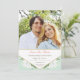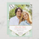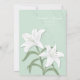 The overall design mixes tradition with a modern flare. The pastel colour scheme and white flowers evoke tradition, while the sans serif text and geometric elements remember the modern. The lilies represent purity and new life, and their shape provides a bold yet soft floral theme for a wedding. Bits of gold and darker greens are blended into the mint colour scheme for warmth. For contrast, a pop of coral highlights important names and headings. Customise with a personal photo.