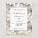 White lilies, flower pattern as background. Personalise and add your names and the details.