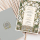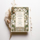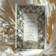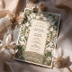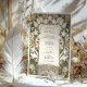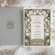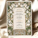 This breathtaking wedding invitation showcases an elaborate Art Nouveau design, blooming with elegant white lilies and delicate blossoms. Stylised in soft ivory, sage green, and muted gold tones, the floral frame exudes timeless elegance while the flowing organic lines and graceful symmetry pay tribute to vintage European craftsmanship.