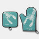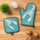 White Lobster on Teal Personalised Oven Mitt & Pot Holder Set